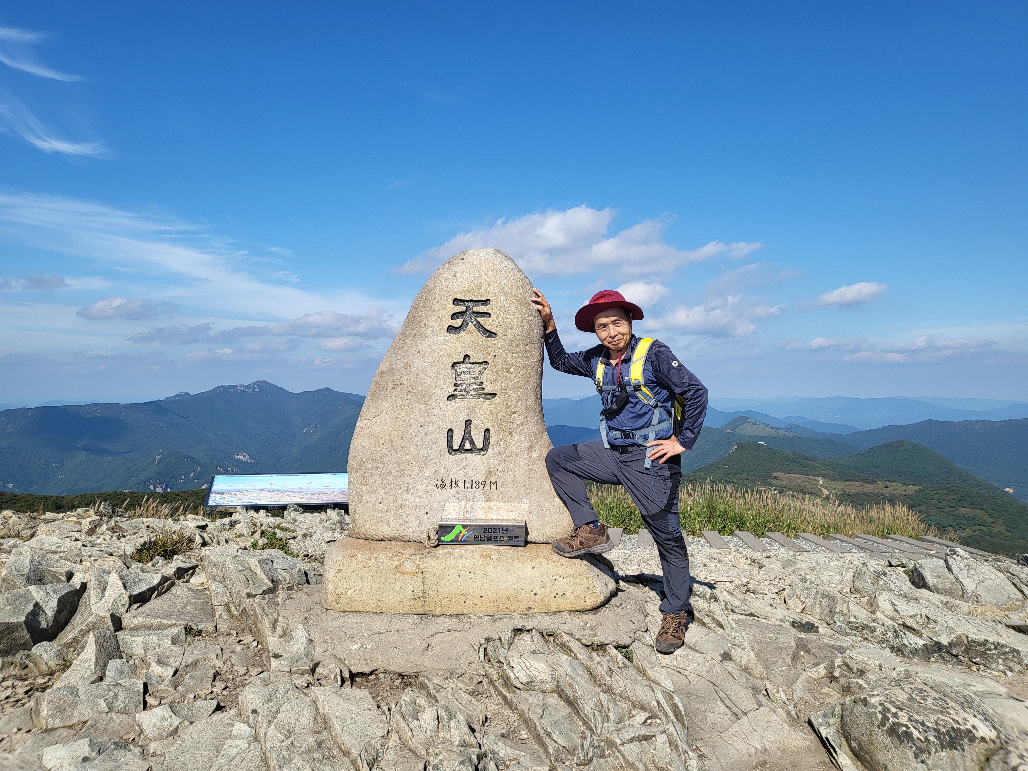 ## 영남알프스 9봉 등반 ## ## 8,9/9 재약산(1108m),천황산(1189m) 등반 - 2021년 9월 23일(목) # 표충사주차장(9:50) → 내원암 → 진불암 → 재약산 정상(1:10) → 점심 → 천황재 → 천황산 정상(14:50) → 표충사주차장(17:30)